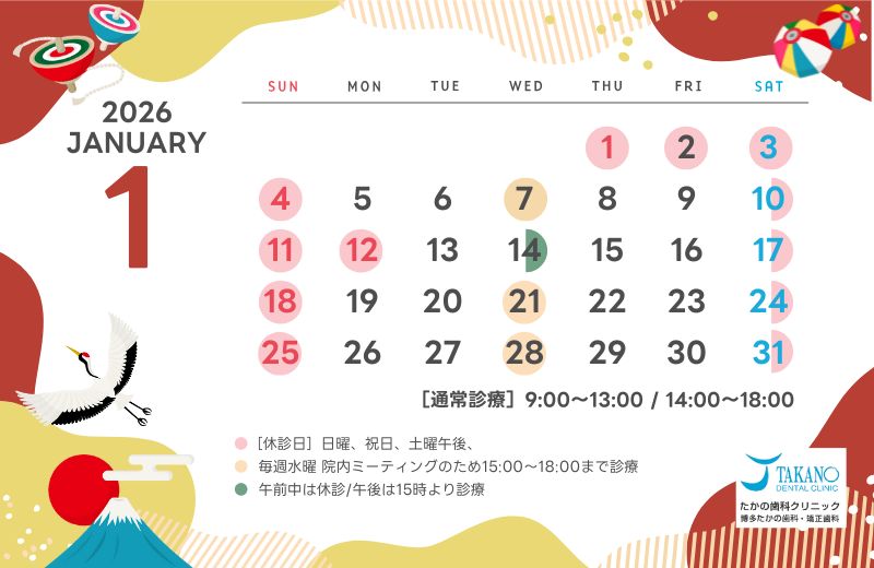 1月は日曜・土曜の午後、12日(月)を休診とさせていただきます。