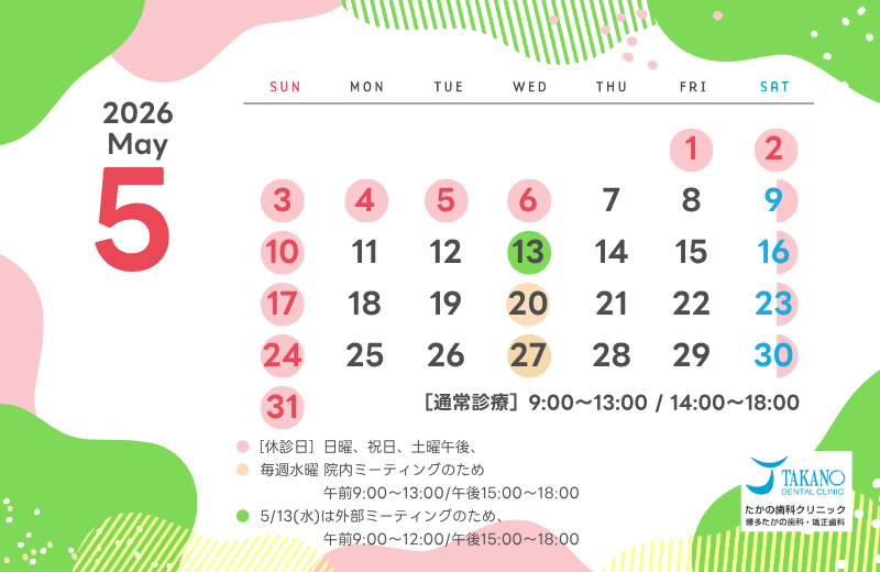・20日(水)、27日(水)は院内ミーティングの為、午後の診療は15:00~18:00となります。